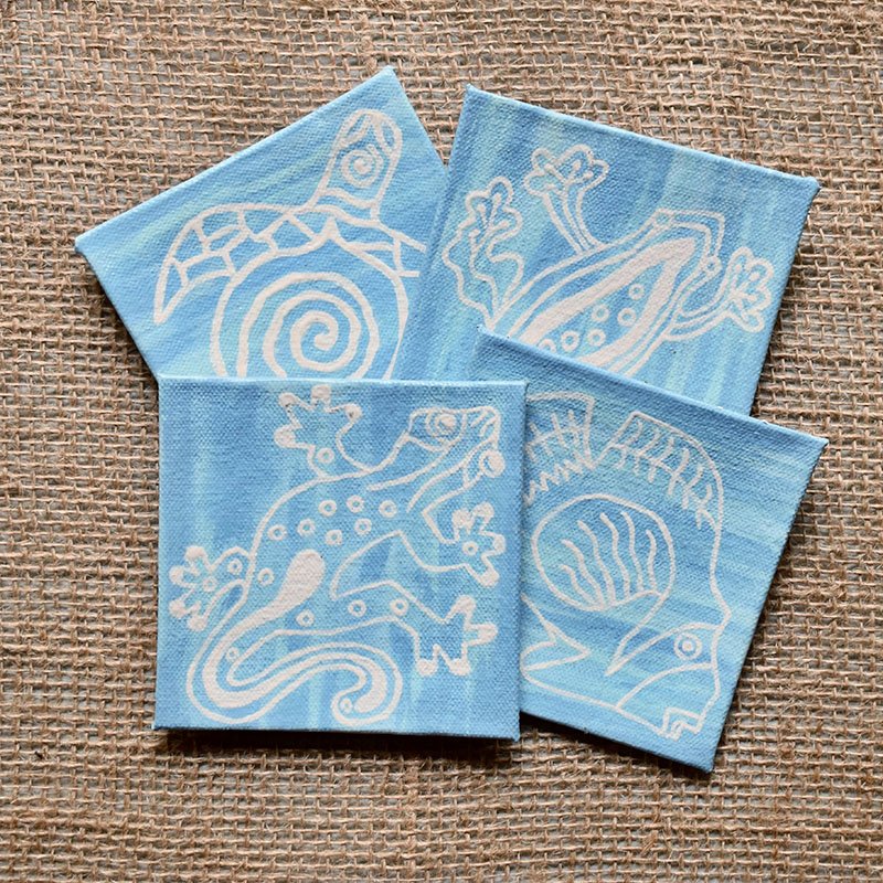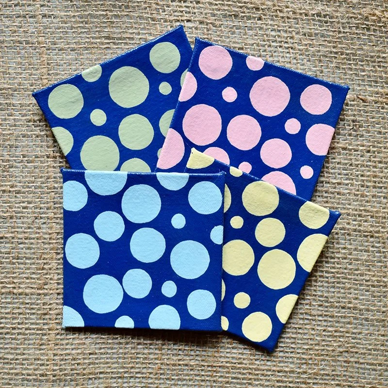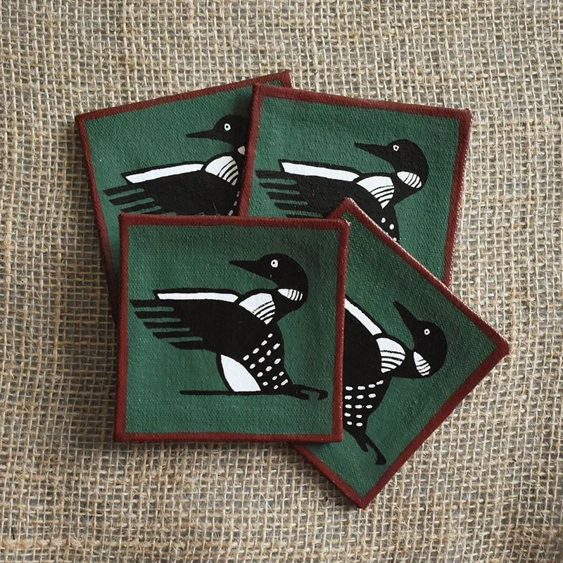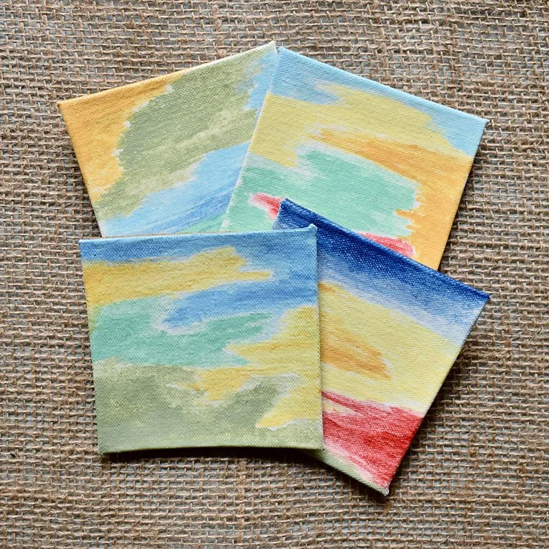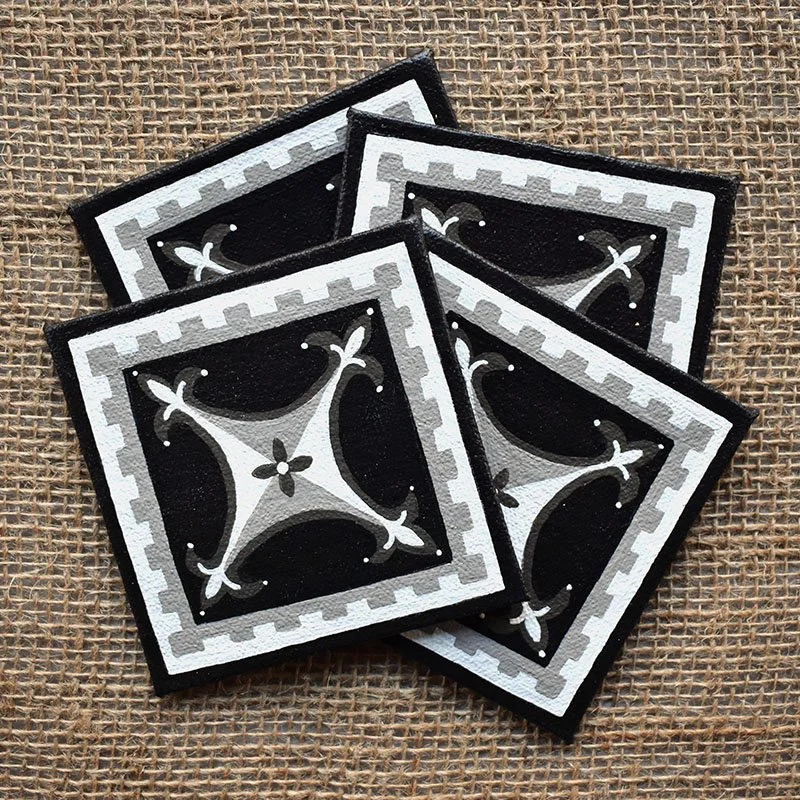 Hand-painted canvas coasters, with layers of urethane to protect it from time and condensation.