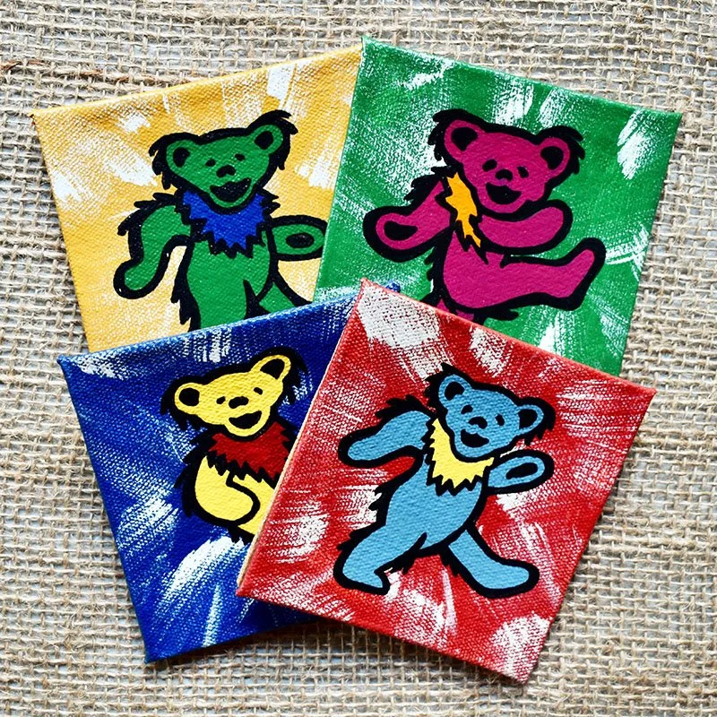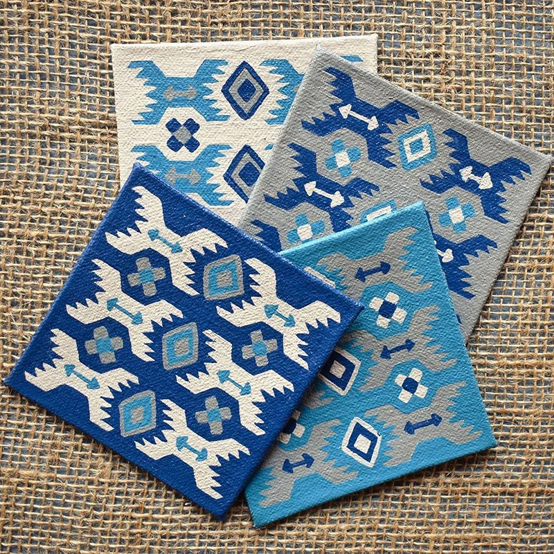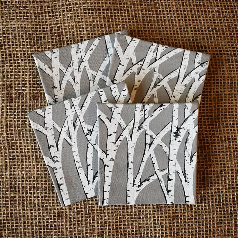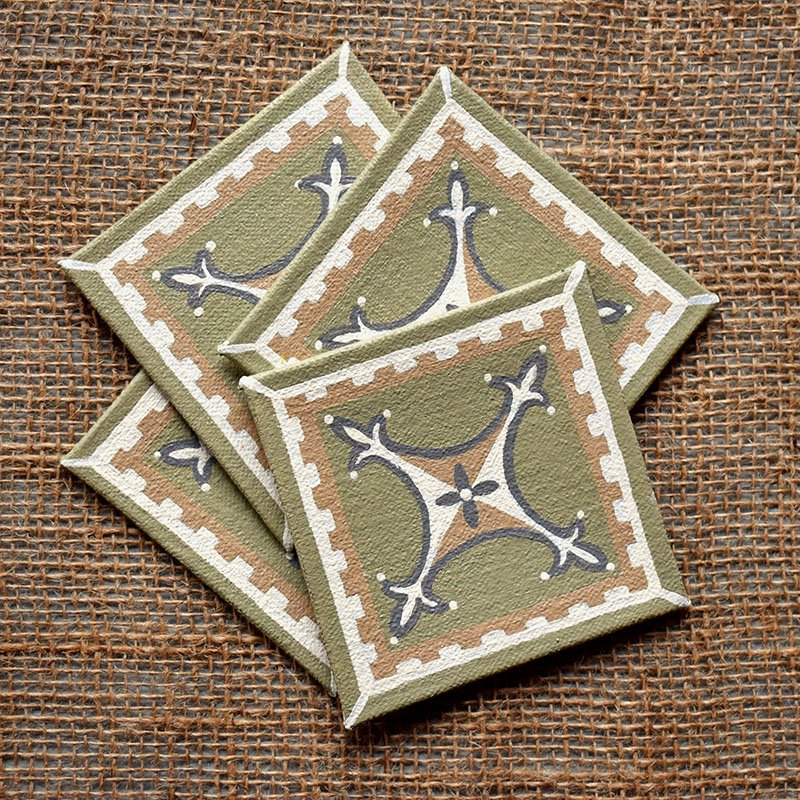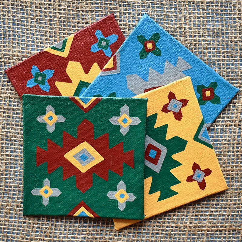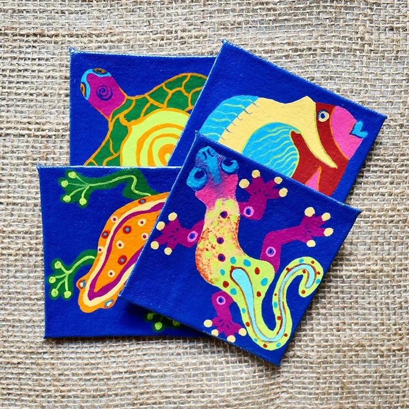 Hand-painted canvas coasters, with layers of urethane to protect it from time and condensation.