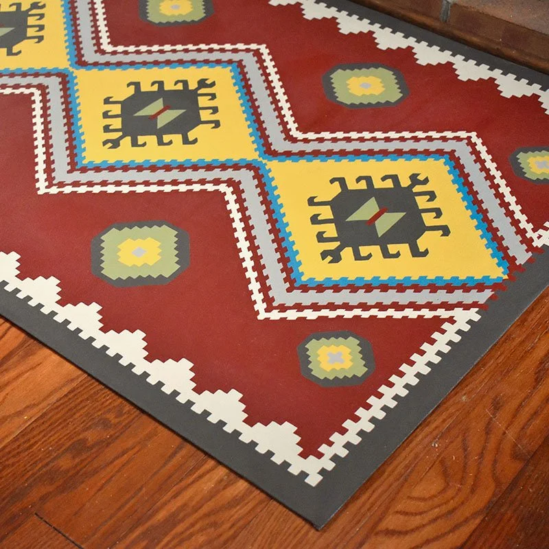 Hand-painted canvas floor cloths, with layers of urethane to protect it from time and traffic.